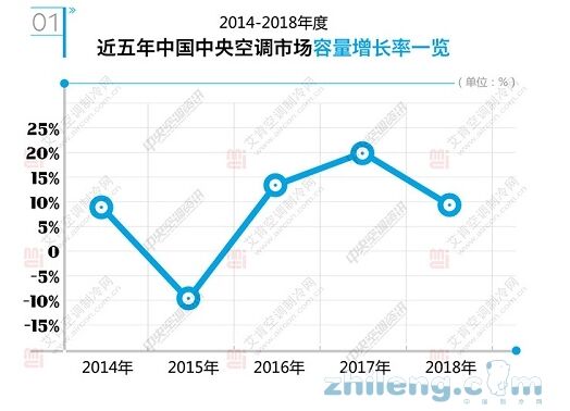 2018年,國(guó)民經(jīng)濟(jì)運(yùn)行保持在合理區(qū)間,總體平穩(wěn)、穩(wěn)中有進(jìn)。國(guó)家統(tǒng)計(jì)局?jǐn)?shù)據(jù)顯示,初步核算,全年國(guó)內(nèi)生產(chǎn)總值900309億元,按可比價(jià)格計(jì)算,比上年增長(zhǎng)6.6%,實(shí)現(xiàn)了6.5%左右的預(yù)期發(fā)展目標(biāo)。分季度看,一季度同比增長(zhǎng)6.8%,二季度增長(zhǎng)6.7%,三季度增長(zhǎng)6.5%,四季度增長(zhǎng)6.4%。分產(chǎn)業(yè)看,第一產(chǎn)業(yè)增加值64734億元,比上年增長(zhǎng)3.5%;第二產(chǎn)業(yè)增加值366001億元,增長(zhǎng)5.8%;第三產(chǎn)業(yè)增加值469575億元,增長(zhǎng)7.6%。 與此同時(shí),我們也要看到,經(jīng)濟(jì)運(yùn)行穩(wěn)中有變、變中有憂,外部環(huán)境復(fù)雜嚴(yán)峻,經(jīng)濟(jì)面臨下行壓力。對(duì)于國(guó)內(nèi)中央空調(diào)行業(yè),2018年最明顯的一個(gè)變化就是家裝零售行業(yè)銷(xiāo)售的不景氣導(dǎo)致家裝零售市場(chǎng)的增長(zhǎng)放緩至個(gè)位數(shù),國(guó)內(nèi)中央空調(diào)市場(chǎng)整體容量及增長(zhǎng)率也受到影響。根據(jù)艾肯空調(diào)制冷網(wǎng)統(tǒng)計(jì),2018年度中國(guó)中央空調(diào)市場(chǎng)整體容量逼近1000億元,與2017年度接近20%的增長(zhǎng)率相比,2018年度中國(guó)中央空調(diào)市場(chǎng)的增長(zhǎng)率已經(jīng)低于10%。(見(jiàn)圖1)