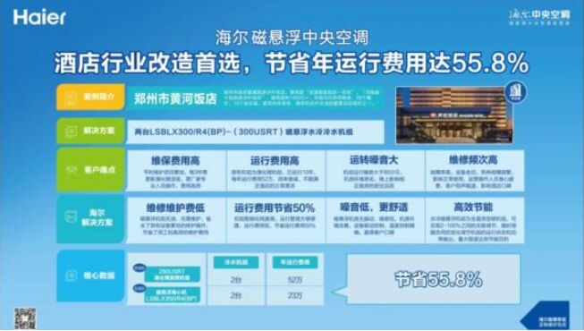 創全球第一空氣生態品牌 體驗最后,黃河飯店、行業協會專家和海爾中央空調共同為體驗中心揭牌。黃河飯店項目負責人表示,體驗中心對同行業、跨行業的空調需求企業同時開放,希望能為節能改造起到更多參考意義。繼商業地產、數據中心、醫院等行業,海爾磁懸浮體驗中心在酒店行業的建成,標志著海爾不僅實現了從產品制造向健康空氣解決方案服務商的經營轉型,也率先完成了物聯網時代健康空氣產業生態圈的布局。 品牌不能改變一個時代,只有生態才能引領一個時代。據產業在線最新數據統計,海爾磁懸浮空調在工業領域市場份額占比64%,酒店領域占比達56.6%,均位居第一。在中國,2018年,海爾磁懸浮空調以50.1%市場份額占據半壁江山;在全球,海爾磁懸浮空調以13.5%市場份額穩居首位,成為全球磁懸浮離心機組銷售量最大的企業。 在“人單合一”指導下,海爾中央空調深入挖掘不同行業需求,打造個性化智慧空氣生態解決方案。基于物聯網下的節能共創平臺和體驗中心等,不斷豐富用戶交互形式,升級用戶智慧節能體驗,實現持續引領。