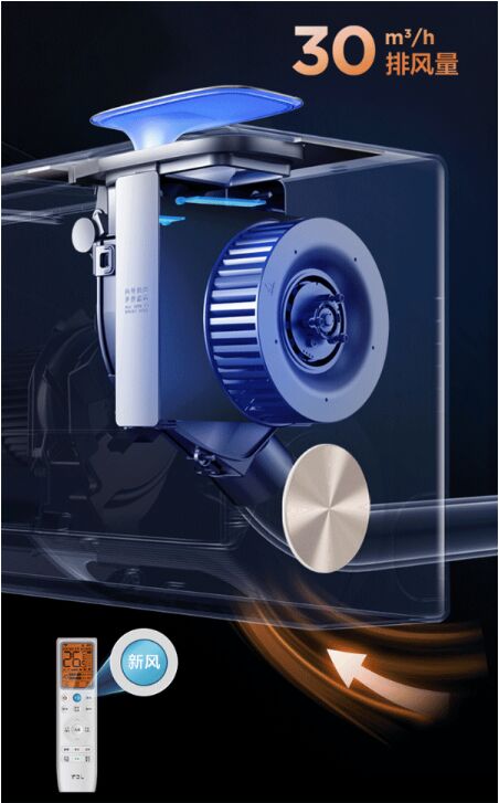 TCL新風空調小藍翼Ⅲ可以實現呼吸模式-新風吸氣模式-排風模式-內循環凈化模式等四種模式切換。它在多模式流道匹配技術、雙流道倍增技術、“蝸殼、電機、風輪、新風氣流”耦合降噪技術三大可呼吸新風技術加持下,創新實現不用二次打墻孔60立方米/h大新風量和30立方米/h排風量,高效提升換氣效率。相比于傳統新風空調只有新風吸氣一種模式,小藍翼Ⅲ通過吸排的組合方式,功能更強大,真正實現了“空調會呼吸,空氣更清新”。