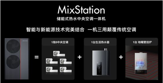 不僅僅智能,這是一個全球首個家用小型化熱能循環回收技術,或帶來一場住宅新能源革命 MixStation 通過智能AI與新能源熱泵技術的融合,實現中央空調、熱水器、地暖的三機合一,同時滿足用戶對制冷、供暖、⽣活熱⽔的需求。它高度集成一體化無外置水箱設計,讓MixStation可以適應普通3房2廳的平屋住宅,將熱泵和水系統空調帶入尋常百姓家。