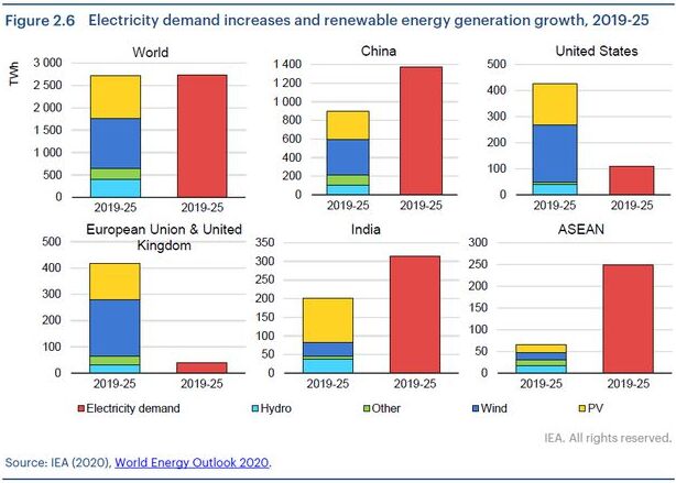 根據國際能源機構(IEA)最新報告,用于發電的可再生能源到2020年將增長7%,與其他燃料形成鮮明對比。盡管全球能源需求將下降5%,但增加并網容量和不斷安裝新項目表明可再生電力強勁增長。