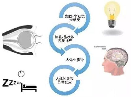 光對人的生物效應可分為視覺效應和非視覺效應。 (1)光的視覺效應: 可見光穿過眼睛的角膜,通過晶狀體成像在視網膜上,經感光細胞轉化為生理信號,視神經接收后產生視覺,從而產生對空間中物體的顏色、形狀和距離的信息的判斷。視覺還可以引起人們心理機理反應,這就是視覺的心理效應。 有兩類視覺細胞:一類是錐狀細胞,感覺光度和色彩;第二類是桿狀細胞,只能感知光度,但敏感度是前者的一萬倍。 日常生活中的許多現象屬于光的視覺效應: 臥室、餐廳、咖啡廳,暖色光(如粉紅色和淺紫色)使整個空間具有溫暖、輕松的氣氛,同時使人皮膚、面容顯得更健康。 在夏季,藍、綠色的光會使人感覺涼爽;而冬季,紅色使人感覺到溫暖。 強烈的多彩照明可以把氣氛變得活躍和生動起來,增加繁華熱鬧的節日氣氛。 現代家庭居室也常用一些紅綠的裝飾燈來點綴起居室和餐廳,以增加歡樂的氣氛。 有些餐廳既無整體照明,也無桌上吊燈,只用柔弱的星星點點的燭光照明來烘托氣氛。 (2)光的非視覺效應,ipRGC的發現: 人眼視網膜上存在第三類感光細胞-內在光敏性視網膜神經節細胞(intrinsicallyphotosensitive reTInal ganglion cells (ipRGCs)),負責調節機體視覺以外的非視覺效應,如管理時間的功能,協調和控制人們在不同時段里的活動節律和幅度。 這種非視覺效應也稱司辰視覺效應(citopiceffects), 這就是2002年英國Brown大學的Berson,Dunn和Takao在哺乳動物中發現的,是2002年世界十大發現之一。 研究表明家鼠的非視覺效應在465nm,但對人類來說,遺傳學的研究表明應在480~485nm(錐狀細胞和桿狀細胞的峰值分別為555nm和507nm)。 (3)ipRGC控制生物鐘的原理: ipRGC在人體大腦中有自己的神經傳輸網絡,與視覺神經傳輸網絡有很大的不同。接受光后,ipRGC產生生物電信號,傳遞到下丘腦(RHT),之后進入視交叉上核(SCN)和腦外神經核(PVN),達到松果體(Pineal)。 松果體是大腦生物鐘的中樞,它會分泌褪黑素。褪黑素合成后,儲存在松果體內。交感神經興奮支配松果體細胞釋放褪黑素到流動的血液中,并誘導自然睡眠,因此其是調節生理節律的一種*重要的激素。 褪黑素的分泌具有明顯的晝夜節律,白天分泌受抑制,晚上分泌活躍。但交感神經的興奮度與達到松果體的光的能量和顏色密切相關,光色和光照強度會影響褪黑素分泌和釋放。 除了調節生物鐘的同時,ipRGC對人體心率、血壓、警覺性、活力等都產生影響,都屬于光的非視覺效應。此外,光引起的生理損傷也應該歸到光的非視覺效應。