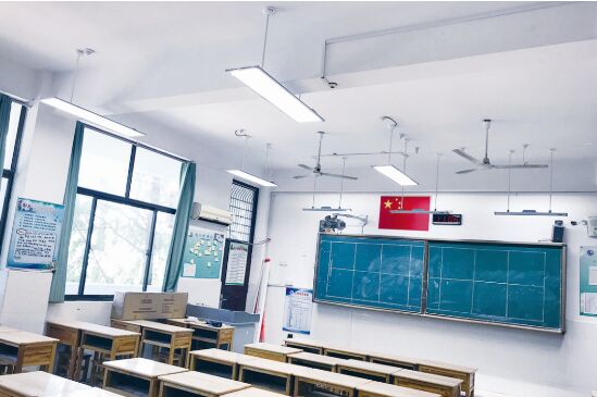 在健康照明方面,“關注基礎裝備,助力健康成長”工程投入了352.6萬元,將惠及14所學校,改善159間教室的照明環境。今年暑假,徐州市開始在部分學校推廣使用健康節能護眼燈(即LED面板燈),進一步改善學校教室照明條件,保護學生視力,控制近視新發病率,改善近視學生視力。在徐州市第十三中學,每間教室都安裝了9盞健康節能護眼燈和3盞黑板燈,打開電源后,柔和的燈光便籠罩在桌面和黑板上。