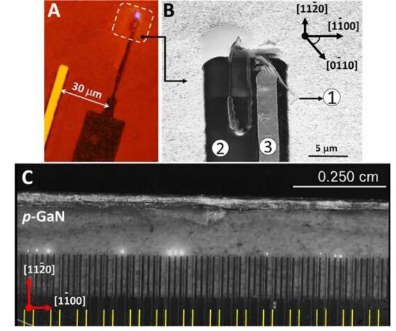 圖|在高電流密度下,鰭式 LED 過渡到鰭式激光器(來源:Science Advances)