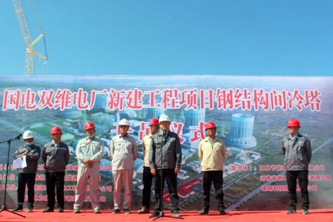 江蘇雙良冷卻系統有限公司(雙良節能全資子公司)總經理劉國銀在儀式上滿懷信心地作出承諾: 雙良將牢記并貫徹“不忘初心,牢記使命”的重要講話精神。 在建設過程中,要求項目部全體成員嚴格按照現場防疫防控要求組織各項施工工作。 安全與質量事故往往從懈怠的這一刻就發生了,要求雙良、河南二建各級管理人員、各位參建者要常繃緊安全質量兩根弦 。 雙良將一如既往秉持“弘揚工匠精神,鑄造鐵軍團隊”,為該項目建成“新時代精品鋼塔、創國優金獎工程”貢獻一份力量。 國電電力發展股份有限公司許琦副總經理、曹震岐主任,國電雙維內蒙古上海廟能源有限公司張建國總經理、朱雷副總經理等領導專程聽取了劉國銀總經理的現場匯報。