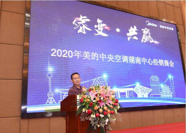 近日,2020年美的中央空調湖南經銷商大會在灰湯華天成溫泉酒店順利召開。本次經銷商會議的主題是“睿變.共贏”,邀請到了湖南地區美的中央空調近兩百位經銷商朋友參加,會議現場氣氛十分火熱。精美的會場布置、高端的樣機展示,無不象征著美的中央空調走向高端品牌市場的步伐永不停歇。