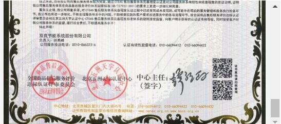 BSCC權威認證:雙良節能雙良溴化鋰吸收式機組、燃氣熱水機組、空氣冷卻設備的售后服務符合CTEAS1001-2007《CTEAS售后服務體系完善程度認證評價規范》標準要求,具有完善的售后服務體系,綜合評審達到七星級(卓越)。 CTEAS七星級(卓越)售后服務認證是對企業售后服務體系完善程度評價的專業標準體系,在國家標準基礎上提出了更高要求,獲得證書的企業意味著不僅具有完善的售后服務體系,售后服務能力在國家處于一流水平,為目前最高的售后服務認證等級。