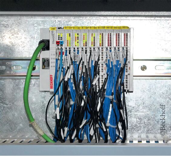 控制柜中的嵌入式控制器與用作人機界面的倍福控制面板 CP2912 相連