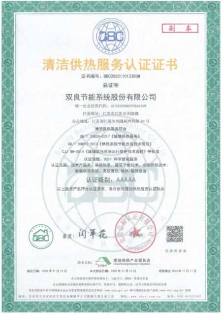 憑借多年在清潔供冷供熱領(lǐng)域的綜合實(shí)力,雙良節(jié)能成為首批中國清潔供熱產(chǎn)業(yè)“清潔供熱服務(wù)認(rèn)證”5A級(jí)企業(yè)。
