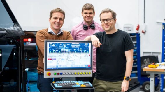 包括 CEO Staffan Nordlinder(左)和軟件工程師 Jakob Sagatowski(右)在內的 DP Patterning工程師們在開發DPP技術的自動化技術期間,與瑞典倍福的運動控制產品專家 Marcus Aldrin(中)展開了密切合作。