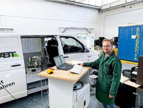 肯普滕應(yīng)用技術(shù)大學(xué)的試驗(yàn)臺正在測試一輛由 ABT 公司完成電動轉(zhuǎn)型的大眾廂式車