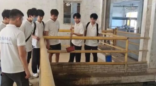 下午,小分隊深入鼎盛漂染織造廢水處理基地,實地調(diào)研處理基礎(chǔ)設(shè)施建設(shè)、處理情況等。期間,團隊成員還與技術(shù)人員進行交流,并學(xué)習(xí)厭氧處理工藝,體驗印染污水處理工序、檢測廢水排放情況,通過對污水處理廠、凈水處理廠的參觀,建立全面和系統(tǒng)的感性認(rèn)識,熟悉處理廠工藝流程,總體布置及處理構(gòu)筑物的類型,構(gòu)造特點,運行和維護情況。深刻體會到工作人員的不易,更加堅定了投入基層實踐的決心。