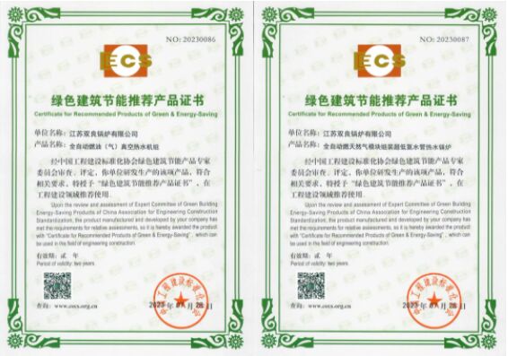 近日,經(jīng)中國(guó)工程建設(shè)標(biāo)準(zhǔn)化協(xié)會(huì)綠色建筑節(jié)能產(chǎn)品專家委員會(huì)審查、評(píng)定,江蘇雙良鍋爐有限公司(簡(jiǎn)稱“雙良鍋爐”)研發(fā)生產(chǎn)的全自動(dòng)燃油(氣)真空熱水機(jī)組、全自動(dòng)燃天然氣模塊組裝超低氮水管熱水鍋爐,符合相關(guān)要求,再度被授予“綠色建筑節(jié)能推薦產(chǎn)品證書”,在工程建設(shè)領(lǐng)域推薦使用。