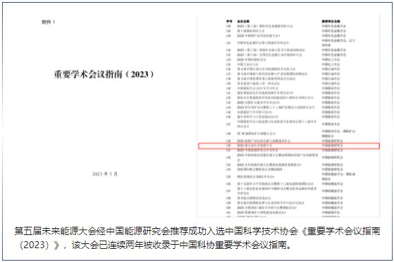 第五屆未來能源大會經中國能源研究會推薦成功入選中國科學技術協會《重要學術會議指南(2023)》,該大會已連續兩年被收錄于中國科協重要學術會議指南。