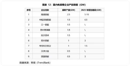 國內(nèi)電解槽企業(yè)產(chǎn)能數(shù)據(jù)(GW)