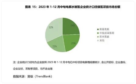2023年1月-12月中旬電解水制氫企業(yè)統(tǒng)計口徑-綠氫項(xiàng)目市場份額