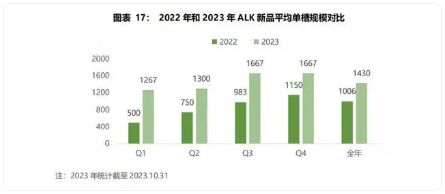 2022年和2023年ALK新品平均單槽規(guī)模對比