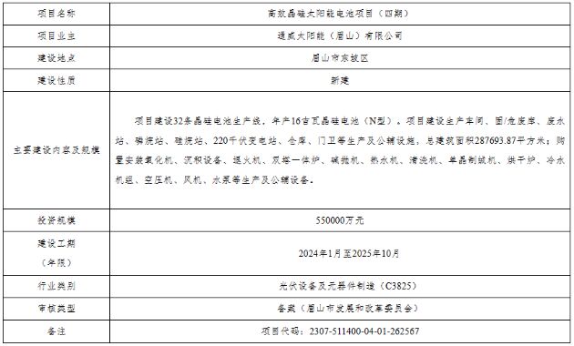1月15日,四川省發展和改革委員會關于高效晶硅太陽能電池項目(四期)節能報告的審查意見(川發改環資函〔2024〕9號)公布。