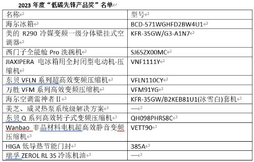 其中,海爾膠州空調綠色低碳工廠實踐、美的綠電行動、加西貝拉高效變頻壓縮機綠色工廠、海爾冰箱綠色智造園區、博西家電可持續發展行動、GMCC美芝綠色工廠、錢江制冷壓縮機現代化智能工廠獲得“可持續發展優創獎”。12款產品或解決方案獲得“低碳先鋒產品獎”。