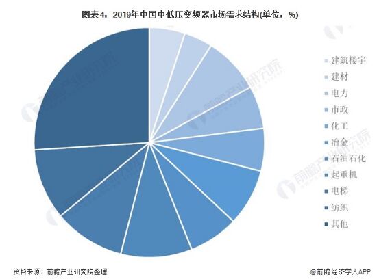 圖表4:2019年中國(guó)中低壓變頻器市場(chǎng)需求結(jié)構(gòu)(單位:%)