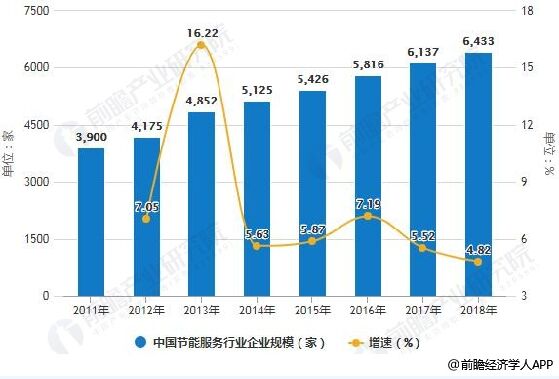 2011-2018年中國節能服務行業企業規模統計及增長情況預測