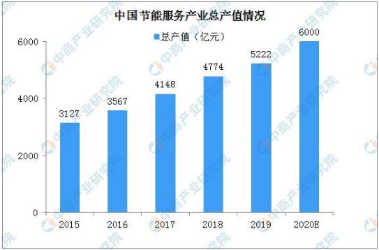 節能服務產業行業現狀 1、產業配套齊全 節能服務產業鏈涉及眾多的行業,包括節能材料、節能設備以及先進的能源管理軟件系統。我國的節能服務產業已經形成了較為龐大的規模,產業鏈日趨完善,產品配套能力較強,可以針對地域特征、節能需求和投資預算提供差異化的節能產品和服務。目前,我國的節能材料、節能設備以及能源管理軟件系統已實現自給自足,具有相對低廉的采購成本,與下游客戶和產品市場貼合比較密切,市場反應時間快,完整的產業鏈為我國節能服務產業的迅速發展提供了基本保障。 2、產業規模快速增長 近年來,節能服務產業總產值不斷增長,呈逐年上漲趨勢。中國節能協會數據顯示,2019年我國節能服務產業總產值達5222億元,同比增長9.38%。根據《“十三五”節能環保產業發展規劃》,到2020年節能服務業總產值達到6000億元。我國節能服務行業潛力巨大。