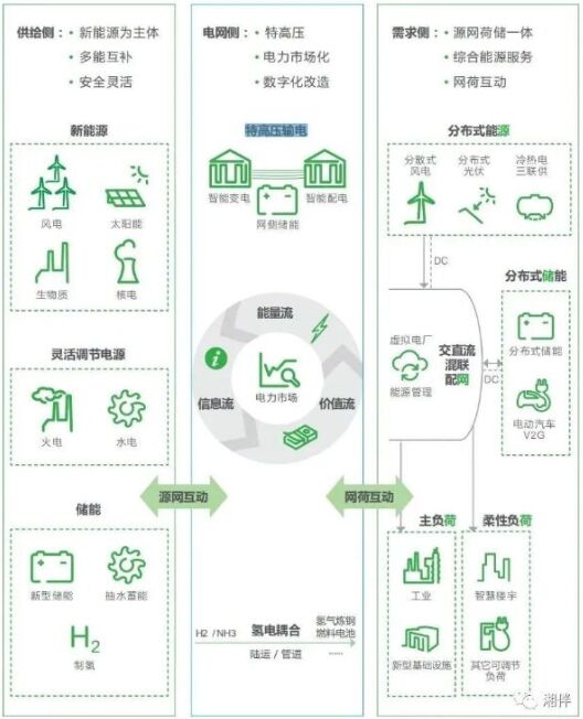 湘伴君認(rèn)為,新型電力系統(tǒng)的“新”字,就集中體現(xiàn)在“清潔低碳、安全充裕、經(jīng)濟(jì)高效、供需協(xié)同、靈活智能”這二十個字上。
