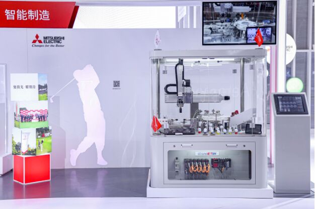 此次參展,三菱電機帶來了多項科技感和趣味性十足的打卡互動體驗,吸引了大批觀眾駐足,最吸睛的莫過于高爾夫球繪圖包裝展機。通過五軸聯動運行、二維平面轉換三維球面軌跡算法、數字孿生等核心技術,機械控制臂可在半徑為21.3mm的高爾夫球面進行精細繪畫,不到2分鐘即可完成高爾夫球上的繪畫與制盒包裝,引發現場陣陣驚嘆。三菱電機通過生動形象的方式,將自己的高精密智能制造能力完美展現。