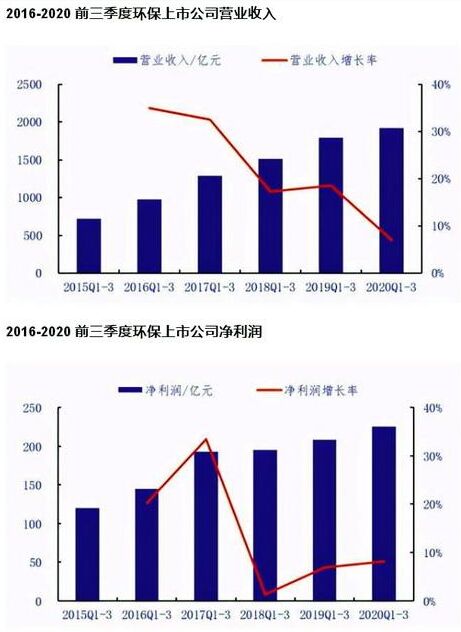 統(tǒng)計(jì)數(shù)據(jù)顯示,今年前三季度,我國(guó)環(huán)保相關(guān)上市公司營(yíng)業(yè)收入同比增長(zhǎng)7.1%,凈利潤(rùn)同比增長(zhǎng)8.1%。 生態(tài)環(huán)境部科技與財(cái)務(wù)司、中國(guó)環(huán)境保護(hù)產(chǎn)業(yè)協(xié)會(huì)日前聯(lián)合發(fā)布的《中國(guó)環(huán)保產(chǎn)業(yè)發(fā)展?fàn)顩r報(bào)告(2020)》稱,2019年全國(guó)環(huán)保產(chǎn)業(yè)營(yíng)業(yè)收入約17800億元,較2018年增長(zhǎng)約11.3%。報(bào)告預(yù)測(cè),2021年我國(guó)環(huán)保產(chǎn)業(yè)營(yíng)業(yè)收入總額有望超過(guò)2萬(wàn)億元,到2025年有望突破3萬(wàn)億元。 來(lái)源:第一財(cái)經(jīng)