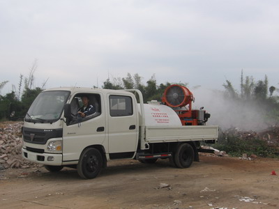 3WD2000-80型環保除塵設備/環境污染凈化處理設備/射霧器 產品特點 ●采用國產優質柴油發電機組,性能穩定、安全可靠; ●功力強、射程高(遠)、穿透性好; ●采用自動控制,遙控操作(可在駕駛室內操作),操作簡單、安全方便; ●工作效率高、防治成本少,藥劑利用率高、污染; ●噴霧機組與發電機組分體設計,配套動力靈活,既可用三相380V的市電,也可配套發電機組供電; 適用范圍: ●環保行業、礦山、煤炭堆場、碼頭、煉鋼廠及其它粉塵比較大的施工場地等除塵及降溫; ●垃圾堆場、公共場所、以及自然災害過后的大面積殺菌消毒、防疫。 技術參數: 1、配套動力:100KW四缸柴油發電機組 2、藥泵:流量105~118L/min 工作壓力2.5~3.5MPa 3、射程:80m 4、霧普范圍:100~300um 5、俯仰角:-10°~45° 6、風筒水平旋轉角:320° 7、藥箱:根據客戶要求選配