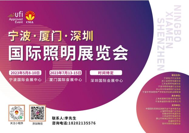 寧波之光,點(diǎn)亮世界!2023寧波國(guó)際照明展覽會(huì)一到六號(hào)展館展位近乎售罄,七八號(hào)展館剩余展位先到先得!優(yōu)質(zhì)展位/廣告位咨詢(xún):18202135576李先生!