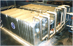 產(chǎn)品應(yīng)用領(lǐng)域: 商業(yè)、民用建筑空調(diào)工程 大型區(qū)域供冷工程 工業(yè)制冷 食品加工 電力發(fā)電工程 產(chǎn)品特點(diǎn): 獨(dú)特的專利技術(shù)的鋼盤管結(jié)構(gòu)。 獨(dú)特的非完全凍結(jié)式蓄冰設(shè)備。 降低能耗,使運(yùn)行費(fèi)用及夜間耗電量進(jìn)一步降低。 穩(wěn)定的低溫融冰出口溫度(1℃),適用于低溫送風(fēng)系統(tǒng)。 低溫空氣可以減低室內(nèi)空氣相對濕度,提高熱舒適性,抑制有害細(xì)菌的繁殖,大幅改善房間空氣品質(zhì)。 采用主機(jī)上游的串聯(lián)系統(tǒng),提高主機(jī)運(yùn)行效率,節(jié)約運(yùn)行費(fèi)用。 減少空調(diào)系統(tǒng)的運(yùn)行費(fèi)用,分時電價差越大,業(yè)主收益越多。 緊湊的外型尺寸,靈活的設(shè)備型號選擇,可置于機(jī)房內(nèi)、建筑物筏基內(nèi)或埋于室外地下,節(jié)約業(yè)主有效建 筑空間。 減少輸送冷水管徑、溝渠及空調(diào)末端風(fēng)機(jī)的成本。 區(qū)域供冷減少CFC的使用和CO2的排放,減少環(huán)境污染和全球性變暖。 唯一適用于大型區(qū)域低溫供冷工程。 因其獨(dú)特的蛇形鋼盤管構(gòu)造和優(yōu)異的傳熱性能,在制冰末期,水被凍結(jié)成25mm厚度的冰層包裹在盤管外壁上,冰層之間留有空隙,仍為0℃的水,沒有冰橋。內(nèi)融冰系統(tǒng)在融冰過程中,隨著融冰比例的增加,冰層與盤管之間形成水環(huán),冰層受到外界水的浮力作用,始終與盤管保持良好接觸。在冰融化到20-30%時,冰層破裂均勻散落在水中,形成溫度均衡的0℃冰水混合物。因此可保證換熱均勻,乙二醇出口溫度恒定,并可控制取冷過程,取冰率可達(dá)100%。